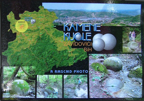 Both Robert and I had a very nice time with the family of men, friends and young boys. We took pictures and video of the stones and family, and listened to their stories they repeated from the stories they were told by Semir Osmanagic about the stones and their property. The young men repeat these stories to the many visitors to their little homestead. Robert and I were very polite and just listened. We did enjoy romping the creek and playing with the stones. However, when we were about to leave, we were asked to sign the guest book and handed a pamphlet /postcard. We were told for a fee we could have the pamphlet that explained about the stone balls and their purpose and become members of some organization that was related to the ‘Pyramid of the Sun Foundation.’ Later on, a month later or so, Semir started another Foundation called ‘The Archaeological Park of Bosnian Stone Balls.’ Zavidovici has the largest amount of stone balls in close vicinity. There are other sites that have stone balls too; but they are of a different quality of stone then those in Zavidovici. Some of these sites are Maglaj Vareš, Mostar, Kakanj, Zenica, Sanski Most, and Žepče.