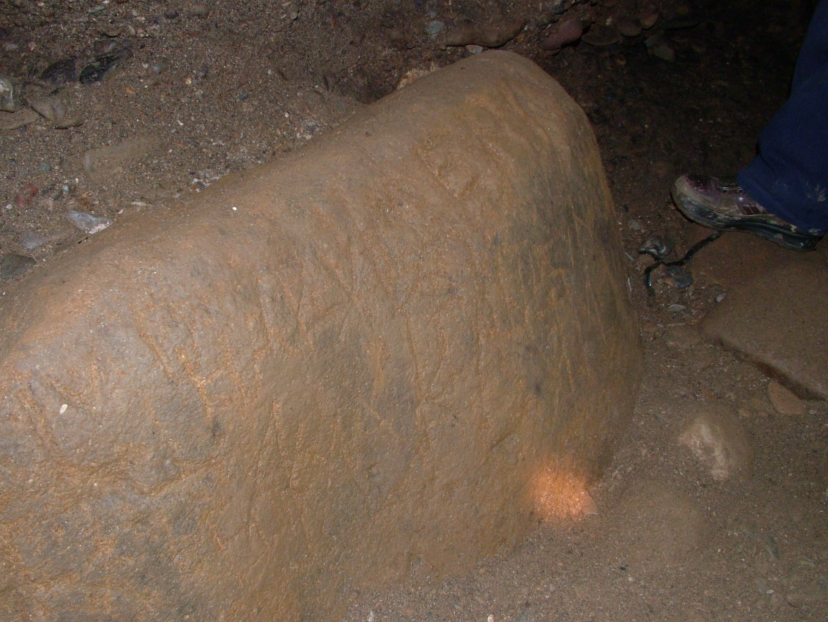 STONE ONE - First stone in the Ravne tunnel to be remarked upon by Nadija Nukic, Geologist for the Pyramid of the Sun Foundation, when I had entered the tunnel with her on July 30th, 2006. The stone had MODERN GRAFFITI ON IT - NOT ANCIENT INSCRIPTIONS.