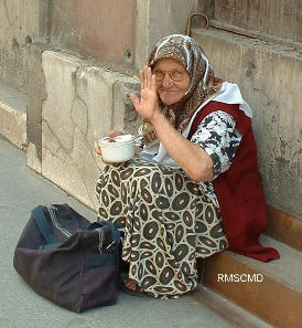 Wonderful elderly lady waving hello to us in Sarajevo.