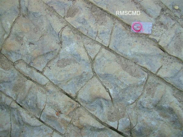 Excavated layer of natural sedimentary stone slab that has cracked on Plijesevica Hill - now called "Man Made" pavement or tile.