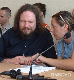 Dr. Schoch in disbelief hearing translation of Semir Osmanagic's presentation by Foundations' Archaeologists, Sylvana Cobanov, during the "formal" Pyramid of the Sun Foundation meeting with the Members of the Board of Directors, media and special invited guests in Sarajevo, on July 31st, 2006.