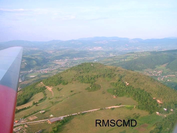 of the summit of Visocica Hill; in the bottom left-hand corner by the wing of