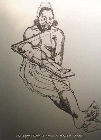 When I first viewed the skulls I thought “ah-ha, these guys were ‘aliens’!” There was no way in my mind that these Maya skulls were in any way a representation of the ‘human’ race. I was wrong. Upon furthering my interest in the skulls, I noticed an illustration of a Maya woman holding a Maya youth strapped into a wooden cradle whereby two planks of wood were compressing and squeezing the child’s head. After a period of time during the soft bone period of development of the child, the skull would be forever elongated and the now ‘cone head’ individual would be recognized as a member of the noble ‘upper class’ society of the Maya. See figure 2. & 4.